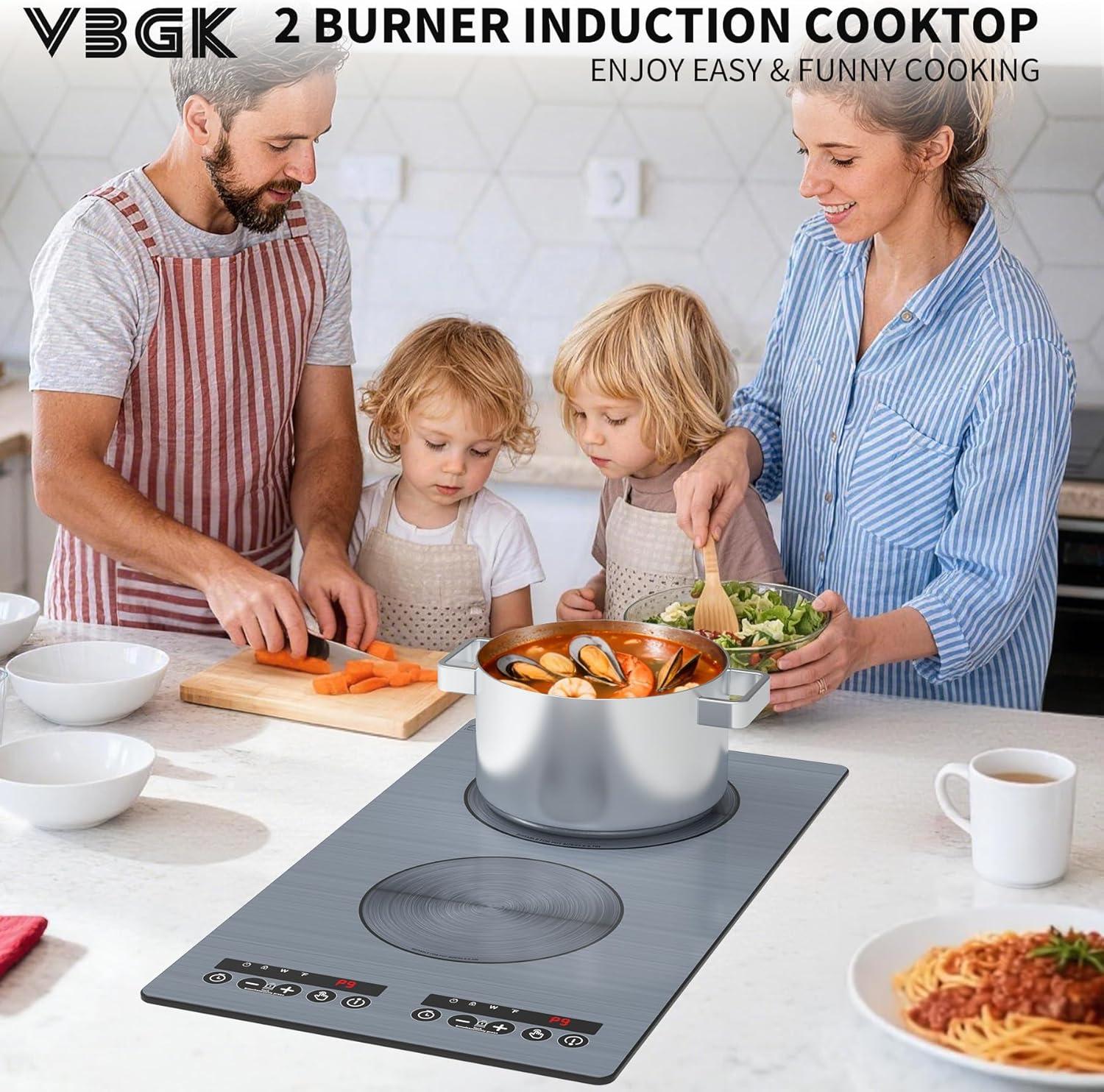 Multi-function induction Stove:VBGK dual induction cooktop touch control Independent heating have 9 power levels 4000W to meet your different choice which is convenient for you to choose the right power to cook a variety of different foods, perfect for braise, fry, simmer, steaming, boil, stir-frying, dual induction cooktop 2 burner which can quickly cook 2 dishes at the same time, saving a lot of time.