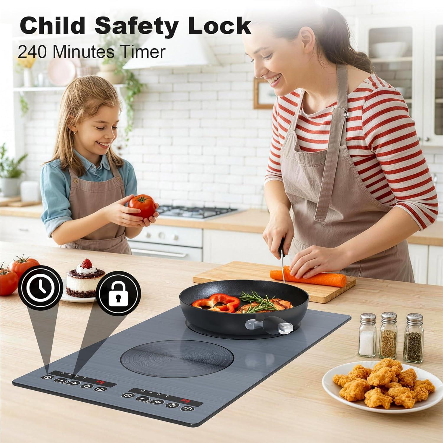 Better than Electric cooktop:VBGK 110V 4000W induction cooktop 2 burner , not an Electric stove. induction stove top burner do not emit high-frequency radiation,It is superior to Electric cooktop. It can protect pregnant women from electromagnetic radiation and they can use it with peace of mind. When cooking with an dual induction cooktop for overheat protection, residual heat indication, auto shut-off ,helping you create a healthy kitchen environment