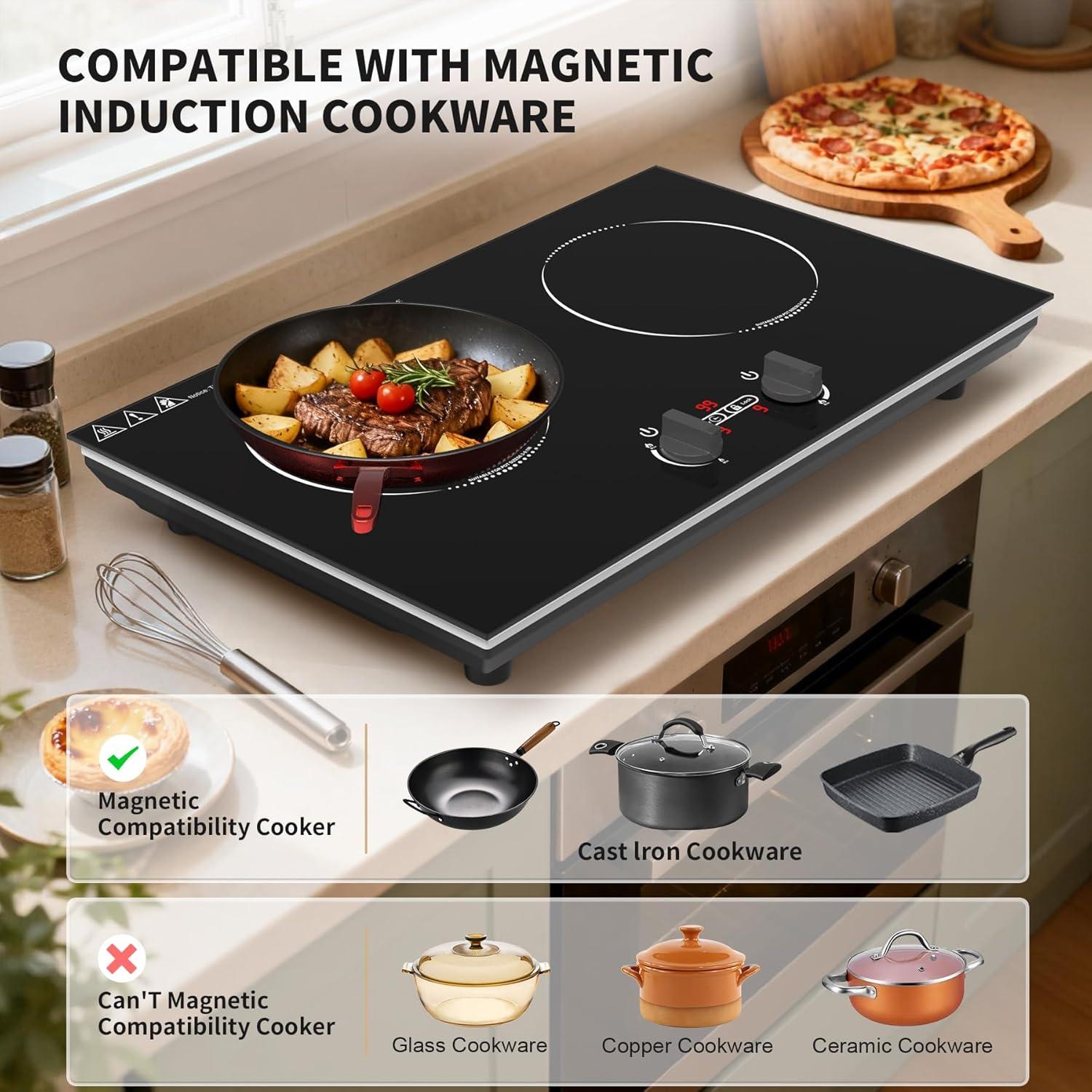 Suitable for All Types of Cookwares: VBGK Electric stove is compatible with various cookware types found in your kitchen, including aluminum pans, copper pans, cast iron skillets, and non-magnetic stainless steel cookware, please use flat-bottomed pots. Cleaning is easy, simply wipe with a clean cloth when the Electric stove top has cooled down. For installation instructions, refer to the product manual or reach out to us at any time.