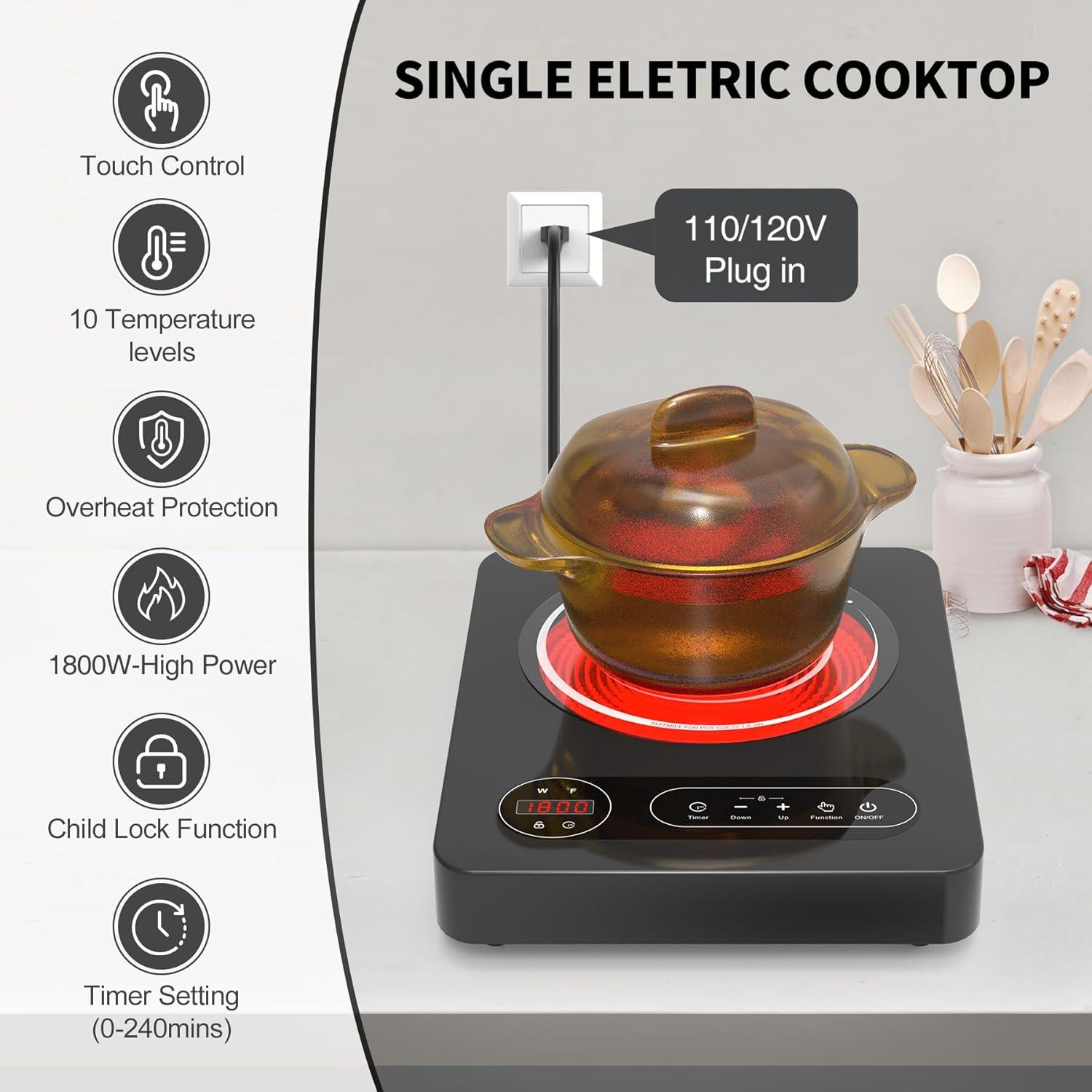 Knob & Touch Controls: VBGK Electric Cooktop 24 inch is equipped with easy-to-use knob control with a child safety lock, timer ,making it simple to operate. Electric Stove top especially convenient for the elderly and individuals with poor eyesight .The heating effect of the Electric cooktop is the same as that of the induction cooker, everyone can enjoy cooking with this electric ceramic cooktop without any obstacles!